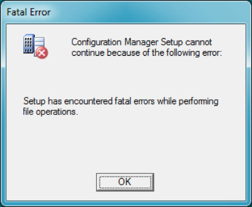 dialog box stating Setup has encountered fatal errors while performing